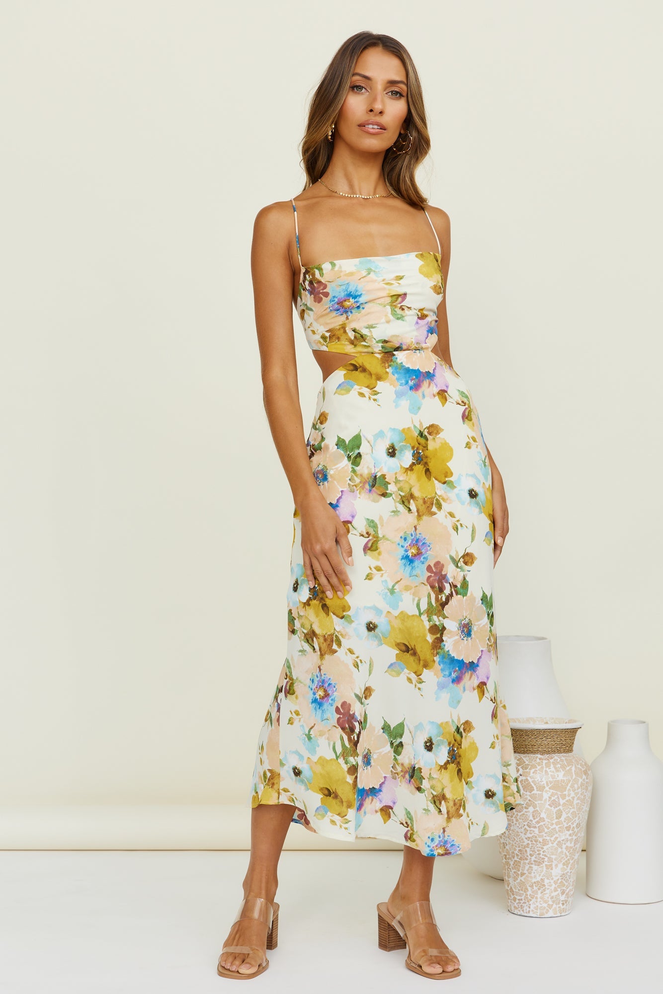 Blend in with the florals of the botanic gardens in the Say I Love You Maxi Dress. We'll be celebrating the best things in life and styling ours with neutral block heels and gold adornments.
